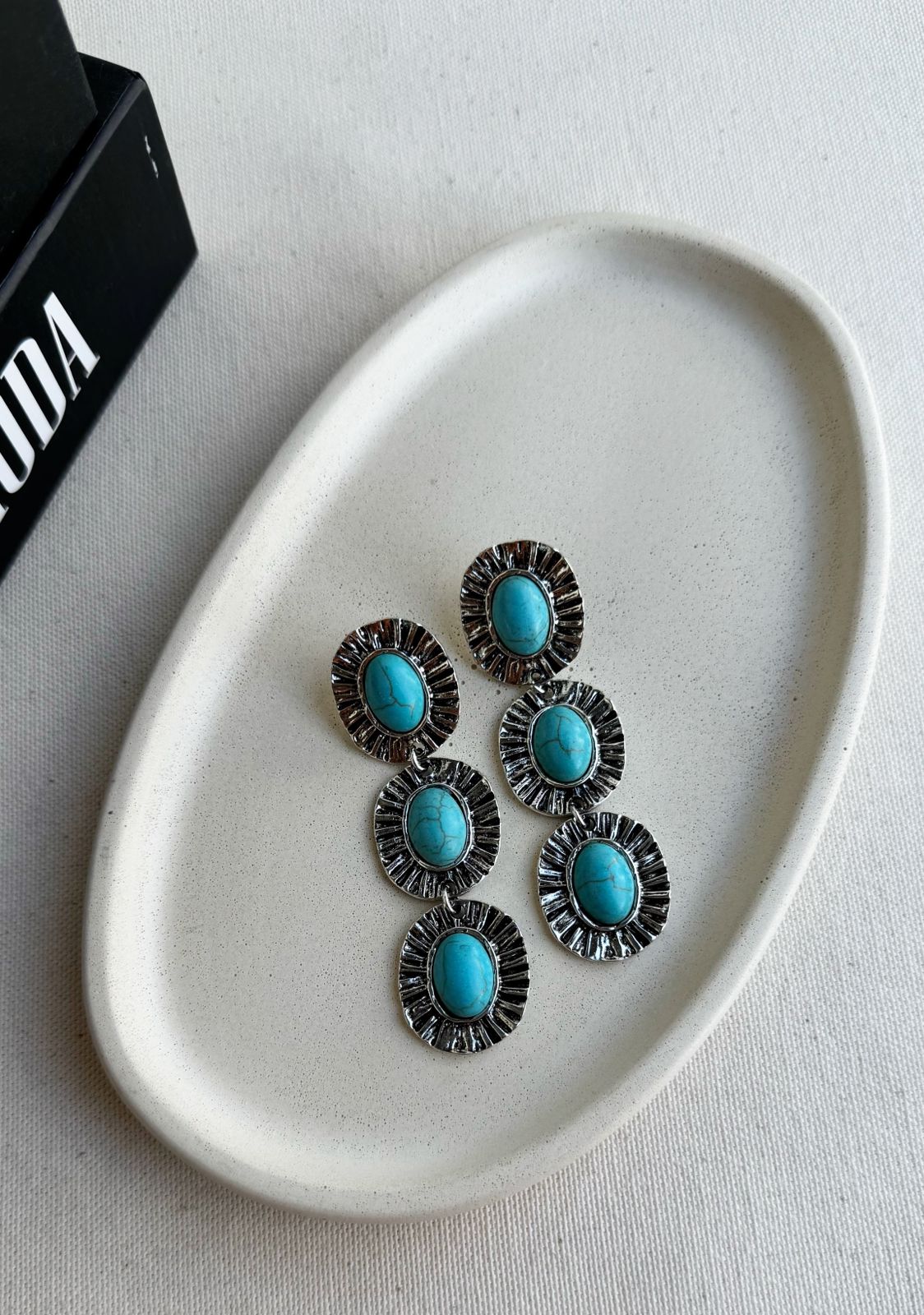 O modelo traz pedras naturais no centro — opções em turquesa e pérola — que valorizam ainda mais o acessório.