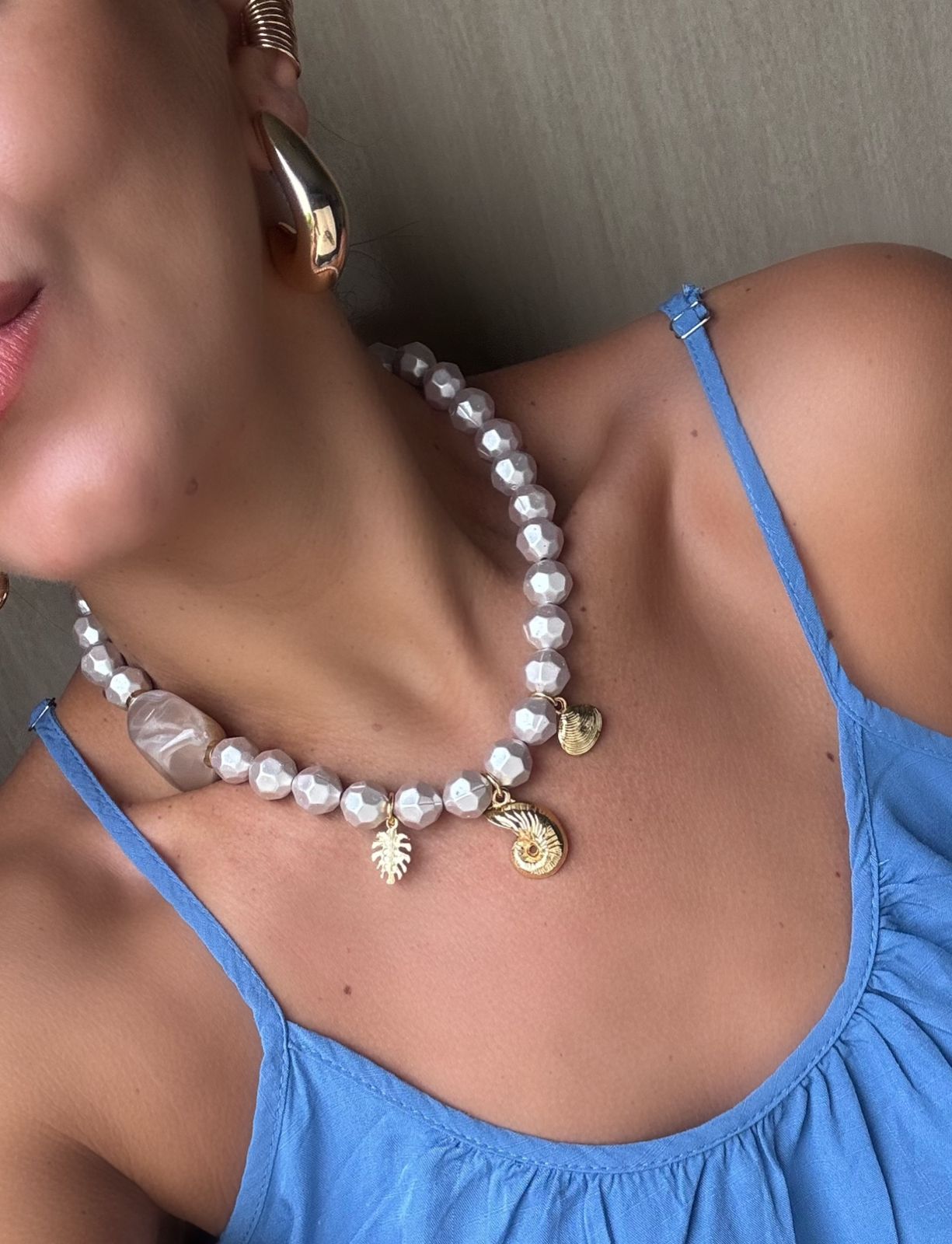 Com design moderno e toque artesanal, este colar é feito em contas de resina acetinada fosca, disponível nas cores coral e nude. Seu acabamento fosco garante sofisticação e leveza, enquanto os pingentes dourados em formato de conchas e elementos marinhos trazem charme e personalidade à peça. Possui 55 cm de circunferência total, incluindo corrente extensora dourada para ajuste confortável. Uma bijuteria elegante e versátil, perfeita para elevar produções casuais e praianas com um toque de estilo.