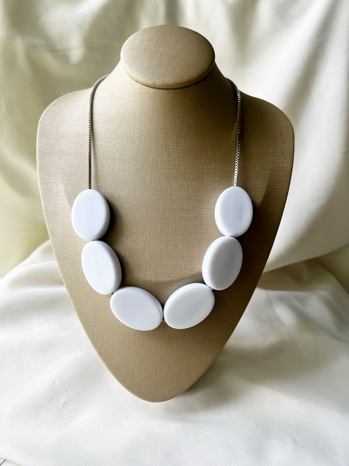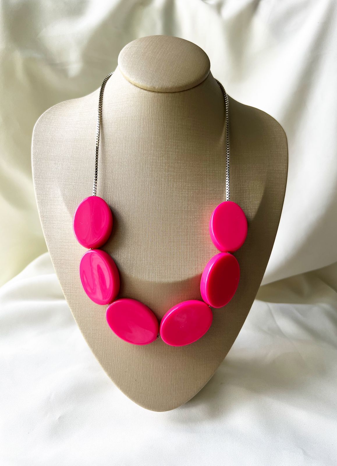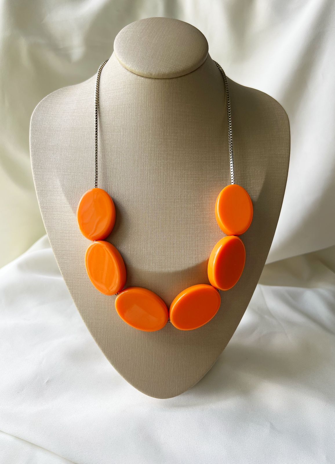 Colar de corrente com detalhes de resina nas cores: Laranja, Pink e Branco. Com acabamento em Níquel e corrente alongadora. Com 28 cm de comprimento.