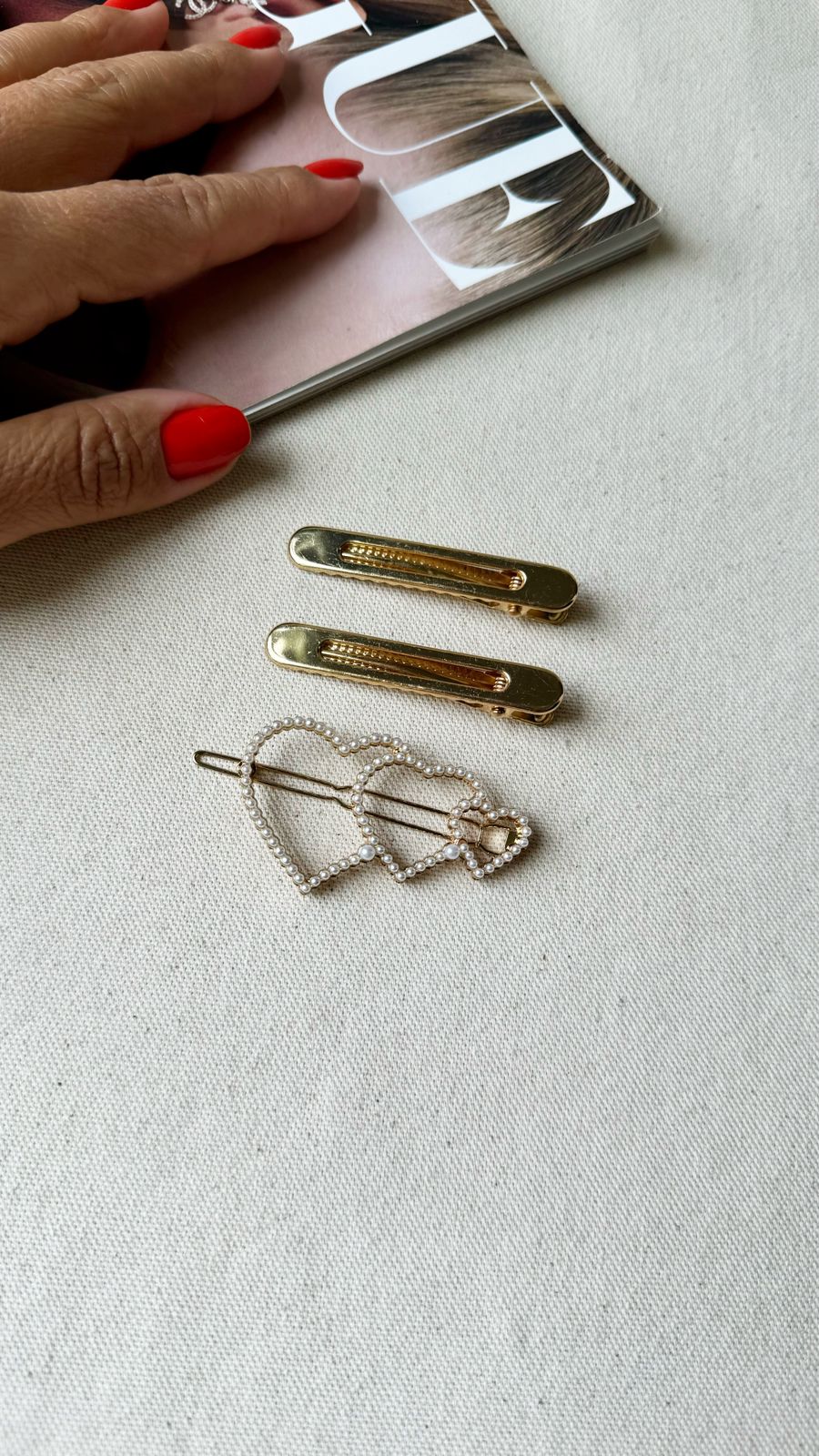 Kit contém: 2 presilha básica e 1 uma presilha de coração.